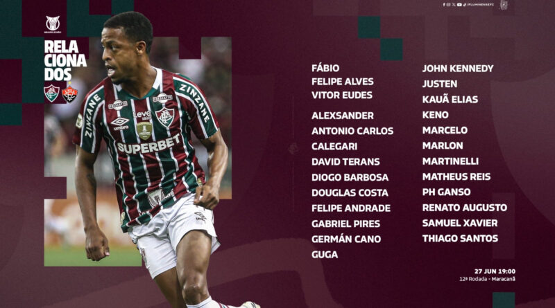 Ler maisO Fluminense divulgou a lista de relacionados para o duelo contra o Vitória, nesta quinta-feira(27), no Maracanã. Para a partida,