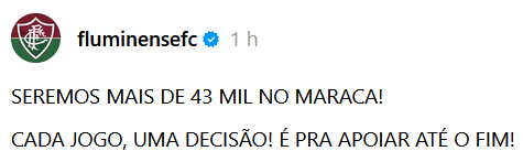 Fluminense confirma 43 mil ingressos comercializados para confronto contra São Paulo