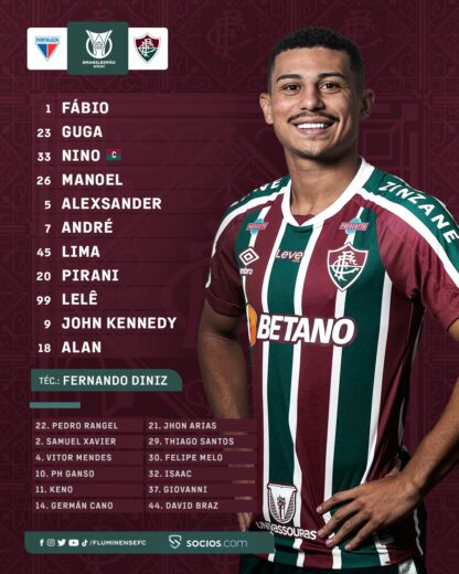 O Fluminense confirmou a escalação para enfrentar o Fortaleza neste sábado (29), pela 3ª rodada do Brasileiro, às 16h30, no Castelão. O Tricolor vai mandar a campo um time misto, pensando no jogo contra o River pela Libertadores, na terça-feira (2). Os titulares Cano, Árias, Ganso, Samuel Xavier, Felipe Melo e Keno ficarão no banco e darão espaço para Alan, Lelê, Pirani, Guga, Manoel e John Kennedy.