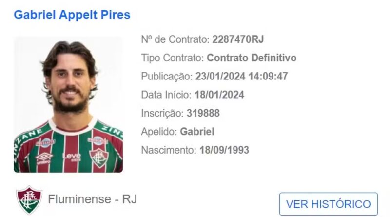 O Boletim Informativo Diário (BID) da CBF divulgou nesta sexta-feira (12) a reativação do contrato entre Fluminense e Yago Ferreira.