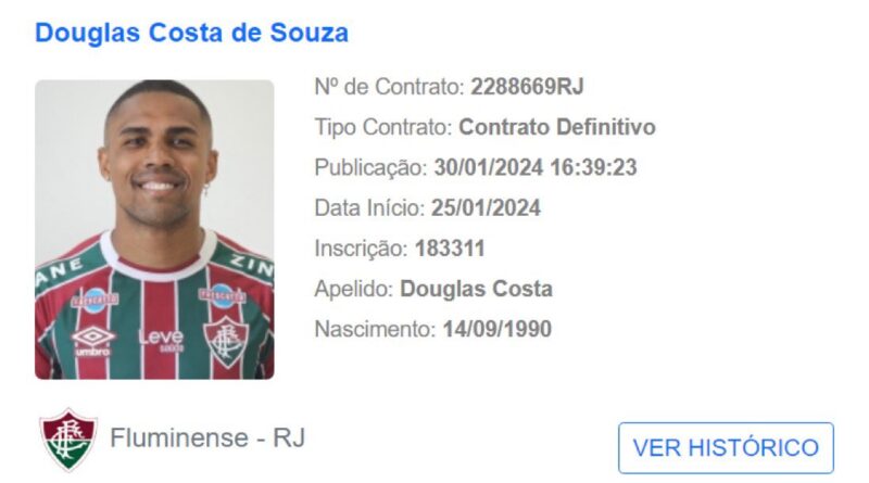 Ler maisDouglas Costa aparece no BID e já pode estrear pelo Fluminense. O tricolor regularizou o atleta junto a CBF nesta