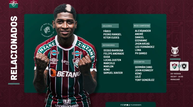 Ler maisO Fluminense está escalado para o clássico contra o Botafogo deste sábado. Fernando Diniz manteve o mesmo time que entrou