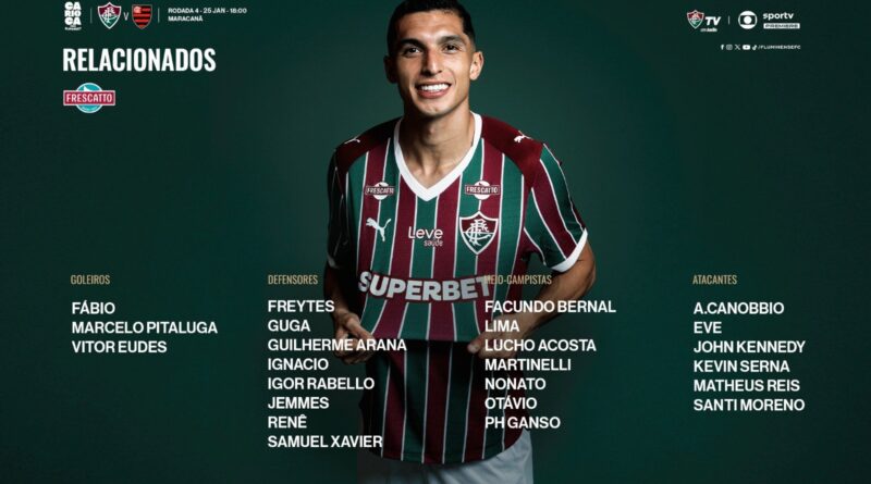 O Fluminense divulgou a lista de relacionados para o Fla x Flu deste domingo (25), pela quarta rodada do Campeonato